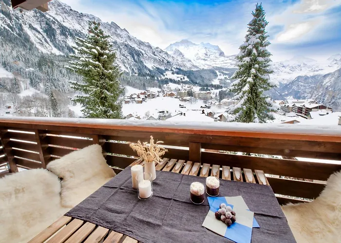 Overlooking the mountain, the 2-room Chalet Alpenvista Wengen is just 7 minutes' walk from Figeller in Wengen.